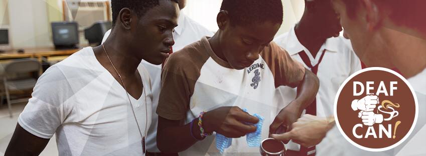 At the root of Deaf Can! Coffee is the belief that Deaf people can do anything and lack nothing, even though we don't hear with our ears. Society however doesn't always agree and Deaf youth often face a negative stigma in their environment that creates a L-A-C-K in their life by excluding them and preventing access to Language, Affirmation, Community and Knowledge. To address this, a group of Deaf teen boys from Caribbean Christian Centre for the Deaf (Kingston, Jamaica) were taken on a field trip to meet Evelyn Clarke, a Deaf coffee farmer in Top Hill, St. Elizabeth. Clarke is a Deaf person proud of his Sign Language, Affirmed in his Deaf identity, Integral in his Community and very Knowledgeable in the art of growing and roasting coffee. With his inspiration and challenge, the teen students began roasting, packaging and selling coffee. Then they began brewing the coffee and a few months later opened up a small coffee shop at their school. Out of this was born the social enterprise Deaf Can! Coffee that trains students at the school and also operates in the public space via a mobile coffee shop, and one day soon we may even have a full-time shop!