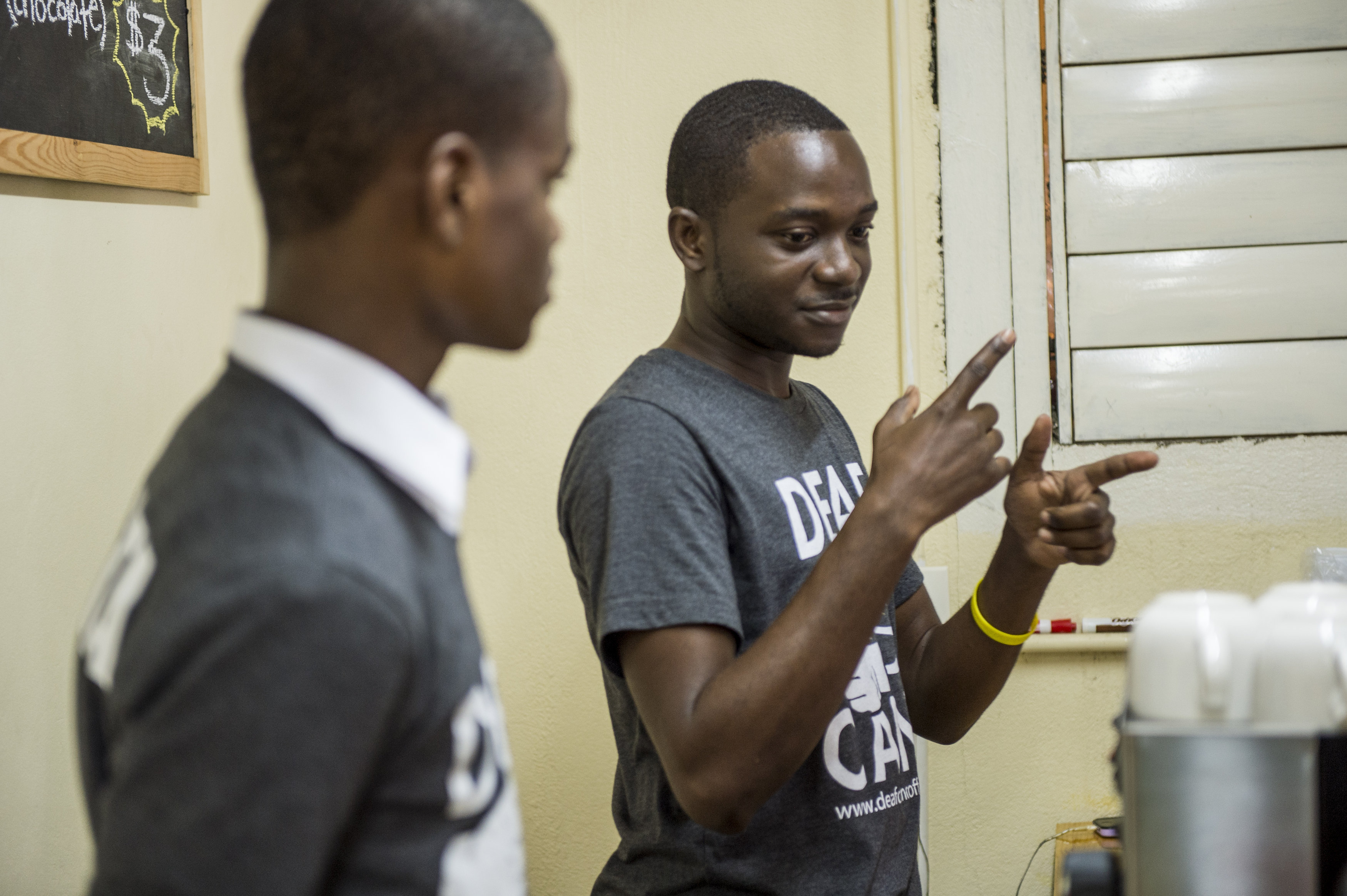 At the root of Deaf Can! Coffee is the belief that Deaf people can do anything and lack nothing, even though we don't hear with our ears. Society however doesn't always agree and Deaf youth often face a negative stigma in their environment that creates a L-A-C-K in their life by excluding them and preventing access to Language, Affirmation, Community and Knowledge. To address this, a group of Deaf teen boys from Caribbean Christian Centre for the Deaf (Kingston, Jamaica) were taken on a field trip to meet Evelyn Clarke, a Deaf coffee farmer in Top Hill, St. Elizabeth. Clarke is a Deaf person proud of his Sign Language, Affirmed in his Deaf identity, Integral in his Community and very Knowledgeable in the art of growing and roasting coffee. With his inspiration and challenge, the teen students began roasting, packaging and selling coffee. Then they began brewing the coffee and a few months later opened up a small coffee shop at their school. Out of this was born the social enterprise Deaf Can! Coffee that trains students at the school and also operates in the public space via a mobile coffee shop, and one day soon we may even have a full-time shop!